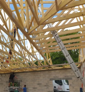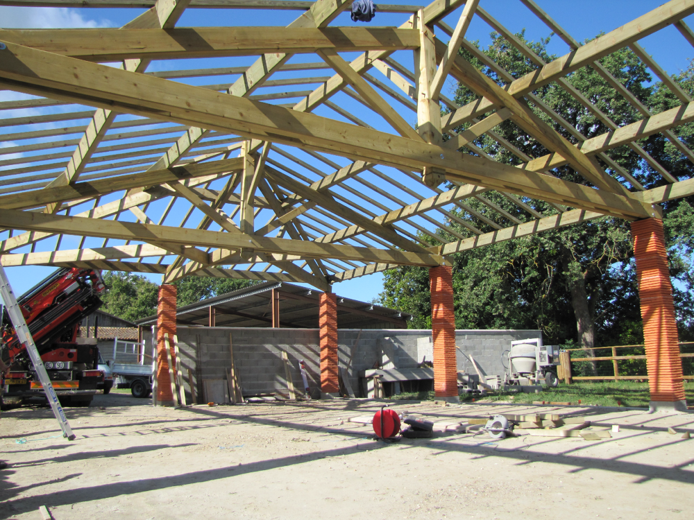 Pose de charpentes industrielles fabriquées localement par nos partenaires référencés.